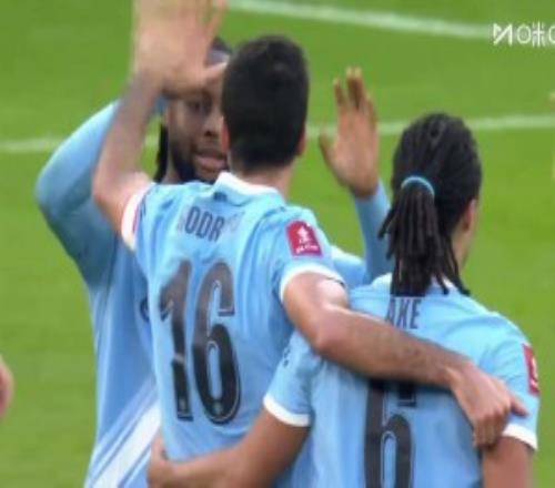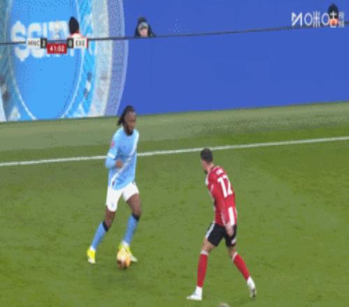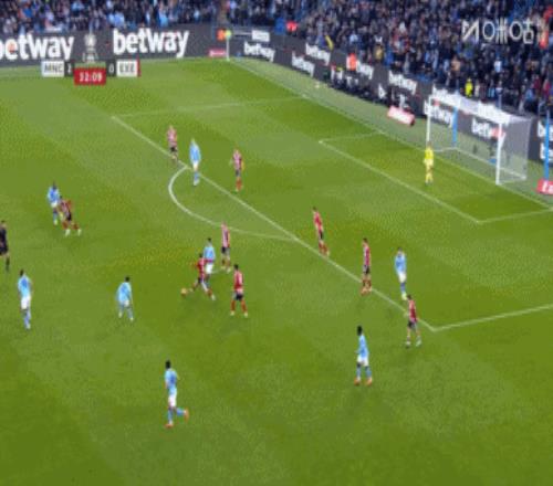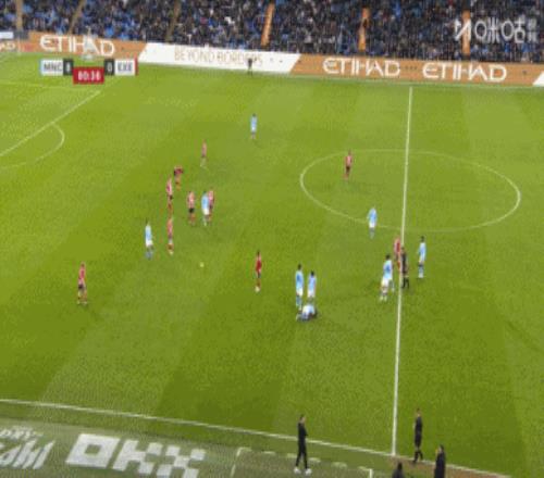 刘易斯2射1传!第90+1分钟,多库突破造成埃克塞特城禁区内乱战,刘易斯得球抽射入网,曼城10-1埃克塞特城!↓